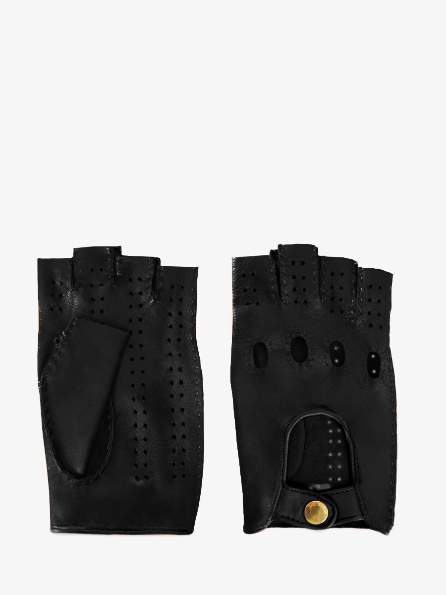 MITTINI IN PELLE NERA DA UOMO Guanti senza dita Pilote Nero - Uomo