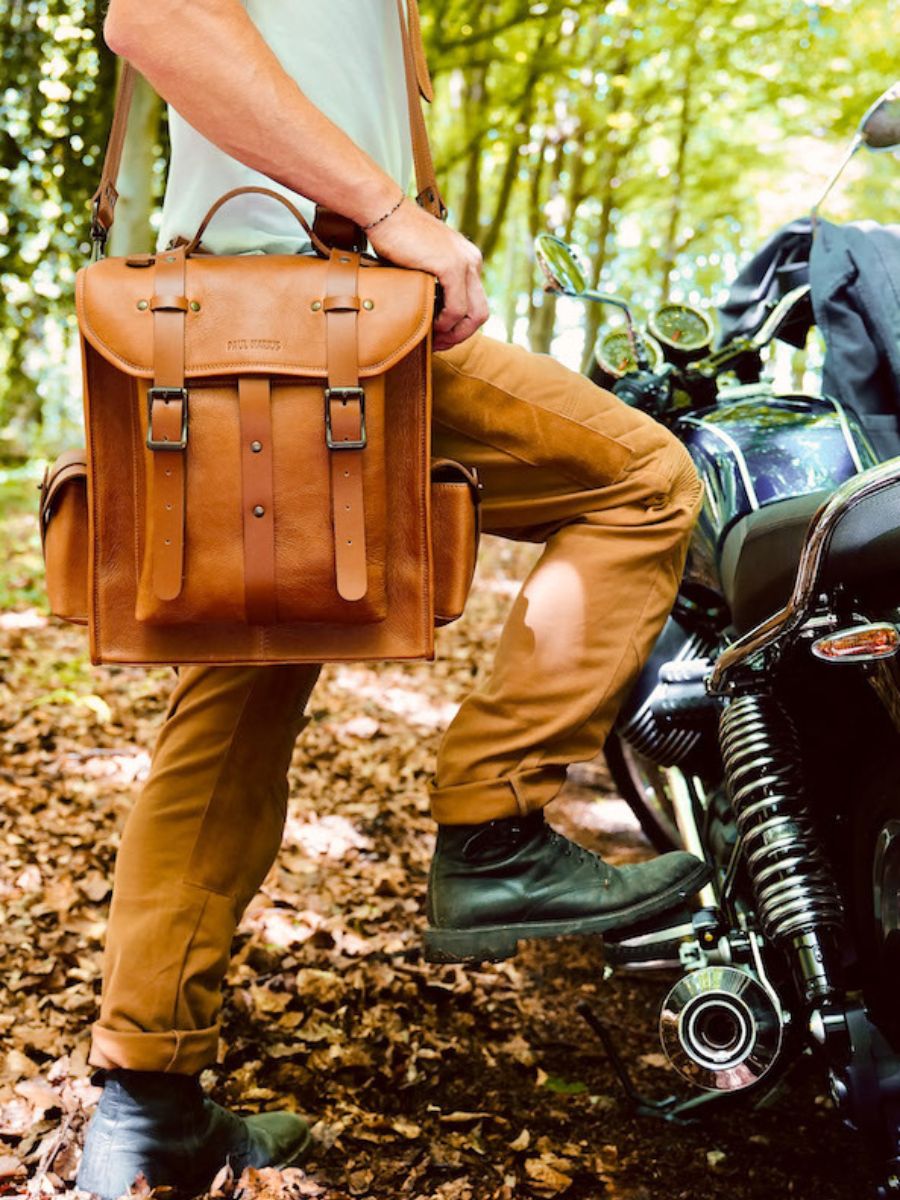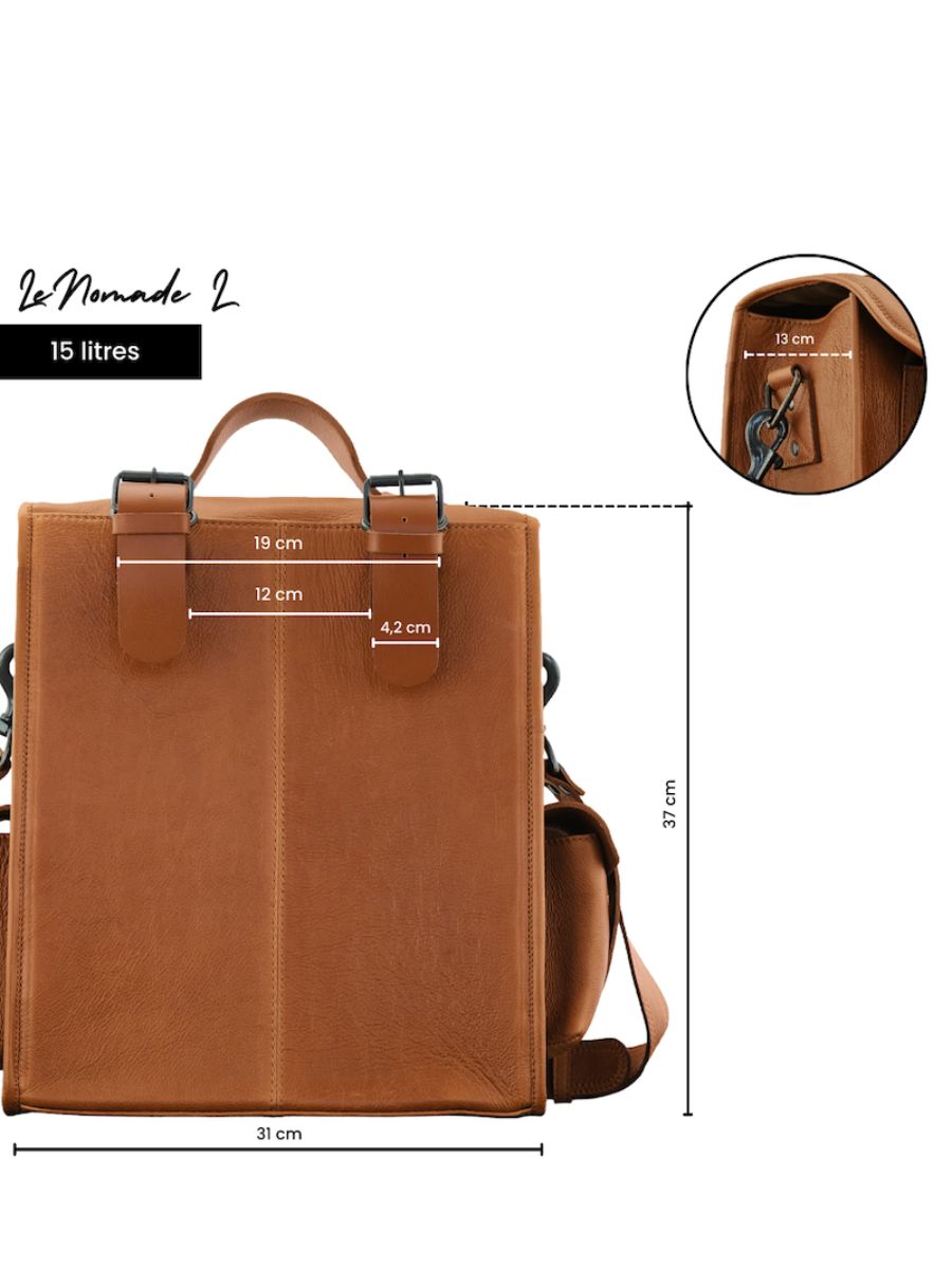 Le Nomade L è una borsa da moto di grandi dimensioni realizzata in pelle di vacchetta oliata per una maggiore resistenza alle intemperie.