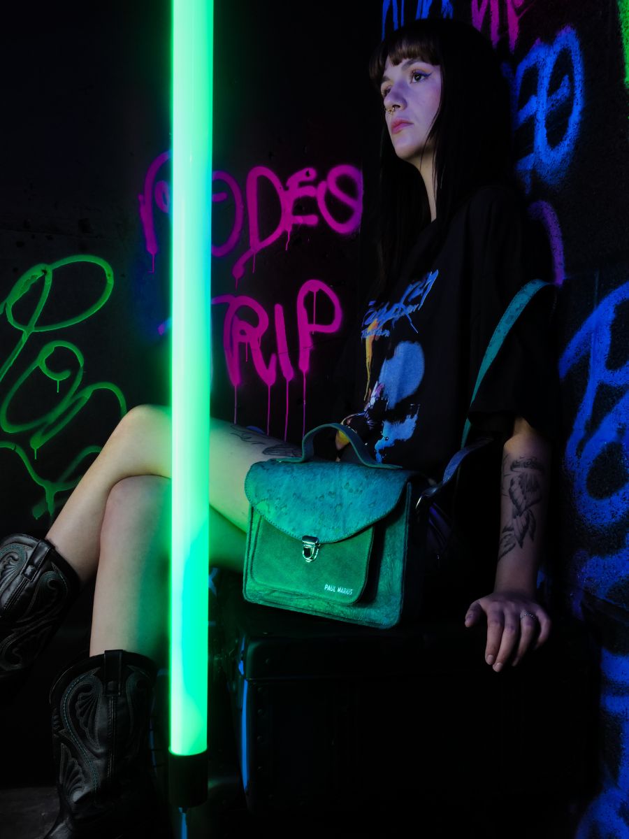 Ispirata alle luci fluorescenti del paesaggio urbano, la capsule collection RODEO TRIP si profila nella notte alla luce dei neon e dei graffiti.